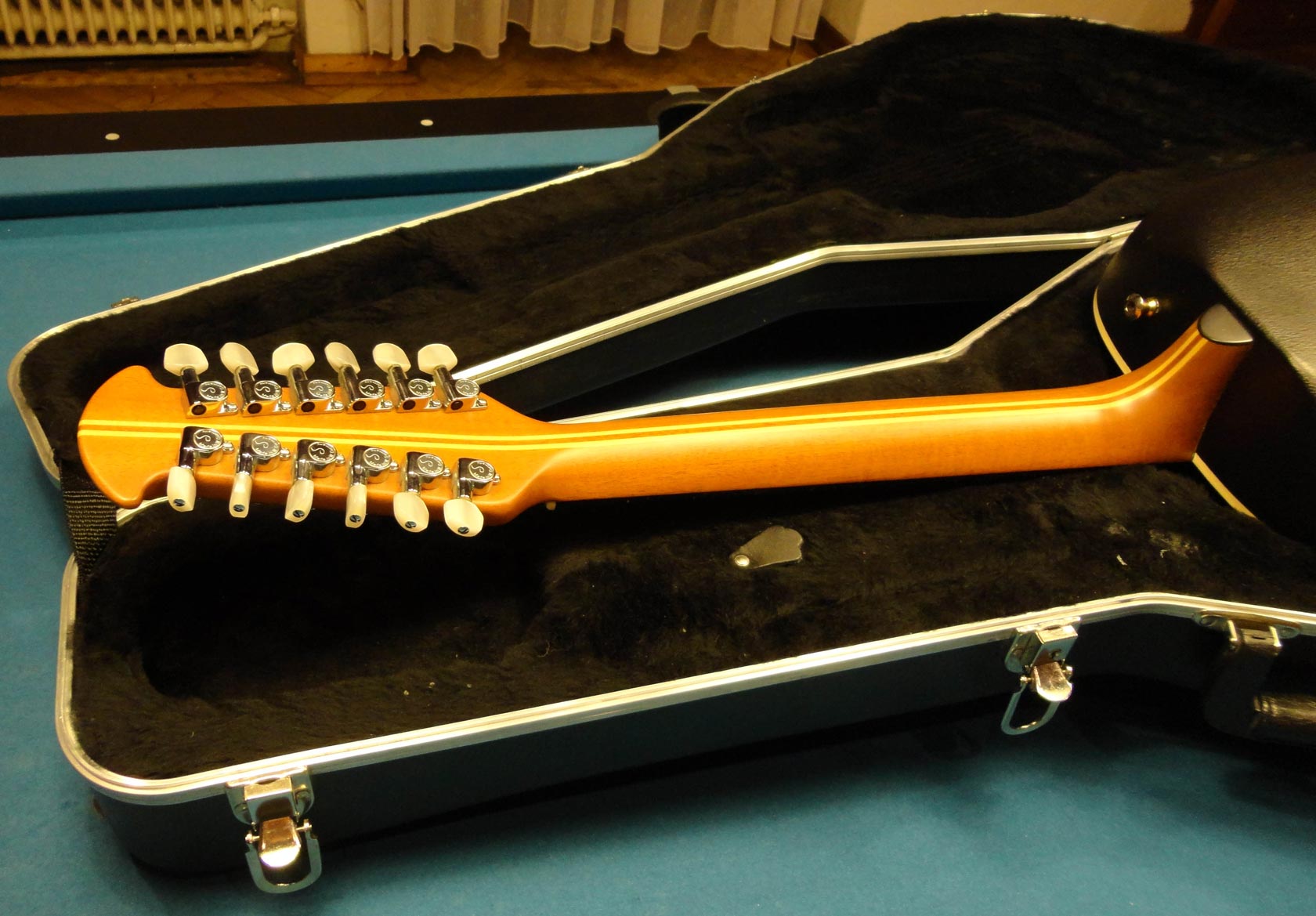 Одна из первых 12ти струнок из 17ой серии, попавших ко мне. Отличный инструмент! Эта гитара практически облетела пол мира, чтобы попасть в место назначения! Перестроена в соль-мажор и поет отныне по-нашему! 🙂 Гитара в очень хорошем состоянии. На ладах, конечное, есть следы игры, но редко винтажные инструменты можно найти с идеальными ладами. (Иногда попадаются исключения из правил, например вот эта Ovation Pacemaker 1115-5, 1978ого года выпуска. Или моя ровесница Ovation 1755-4, 1984ого года.) Хотя исходя из опыта на этой 1755 ещё играть и играть!